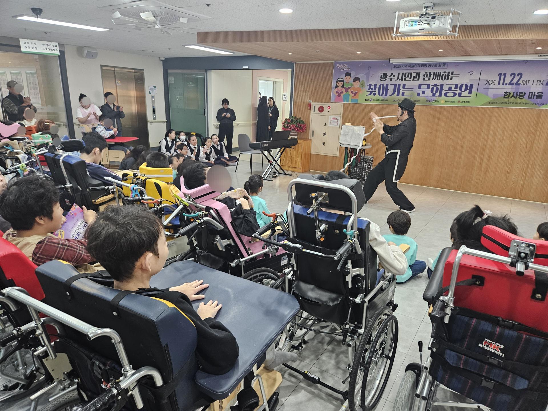 오늘은 광주시음악협회에서 주최한 찾아가는 문화공연을 통해 광주시소년소녀합창단, 베이스바리톤 강병주님, 마술사 최수만님이 한사랑마을에 방문해주셨습니다!