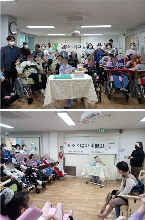 오늘은 한사랑마을에서 오랜 시간 함께한 정OO 이용자의 송별회가 있었습니다.
